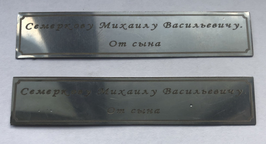 Но по желанию заказчика можем наносить гравировку на нержавеющую сталь большей толщины.